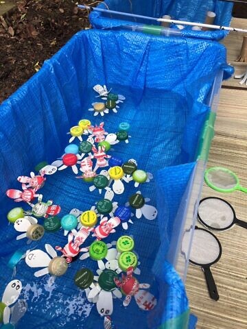 ・カメすくい(ペットボトルキャップ、牛乳パック製)
